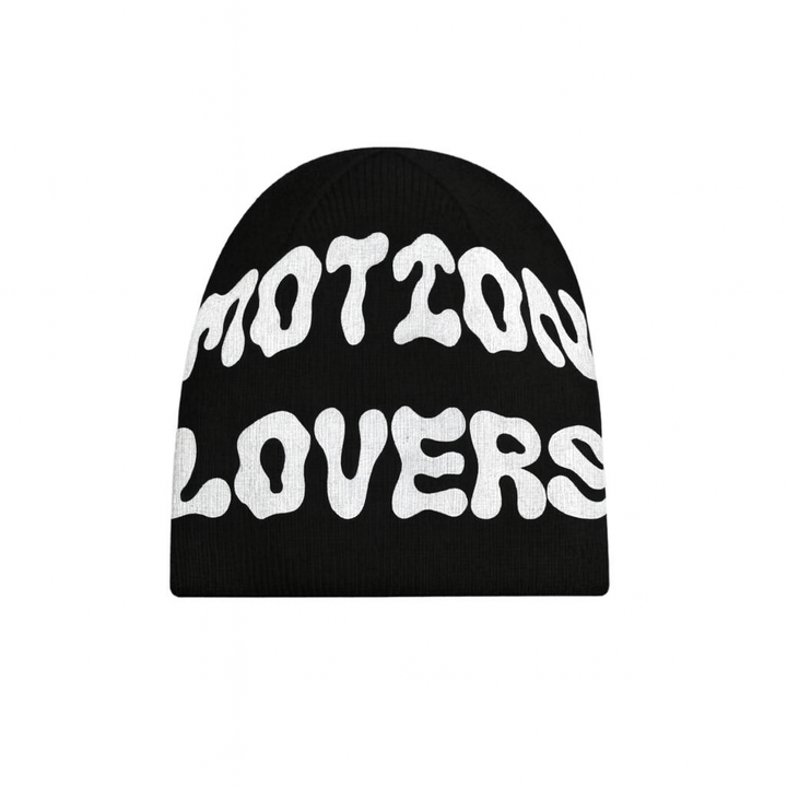 - White wavy “MOTION LOVERS” lettering in a bold, eye-catching style